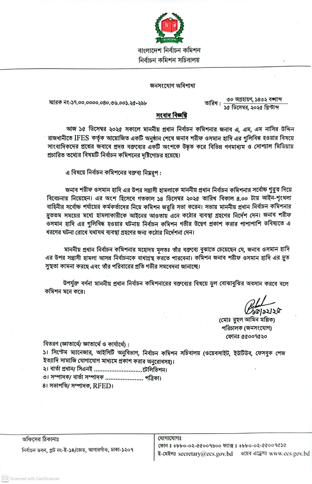 সংবাদ বিজ্ঞপ্তি